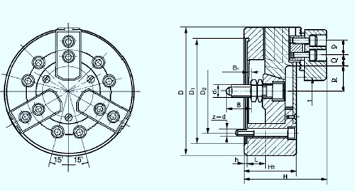 ☆The structure types of jaws are classified as K51B series(soft top jaws with cross tenon) and K51C series (soft top jaws with serrations).