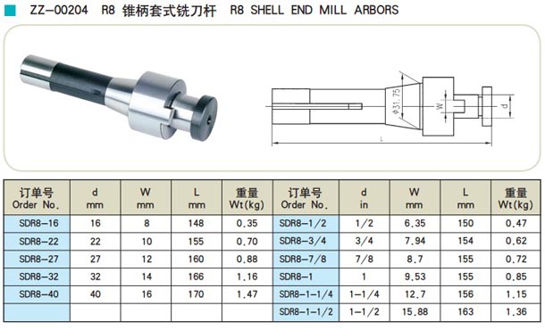 R8錐柄套式銑刀桿