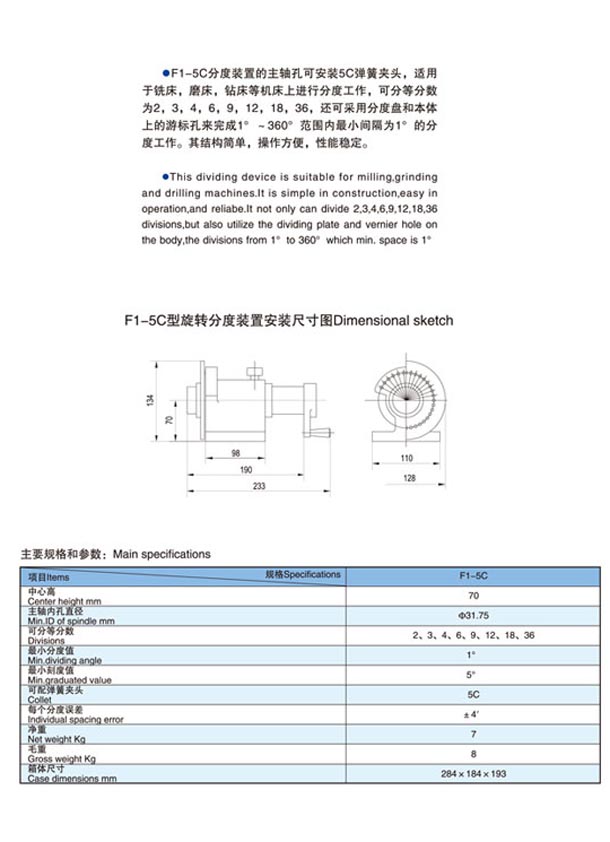 F1-5C型旋轉(zhuǎn)分度裝置