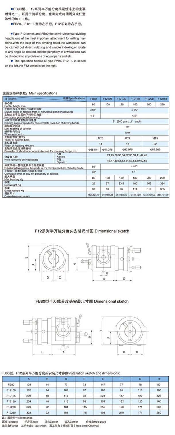 FB80型F12系列半萬能分度頭