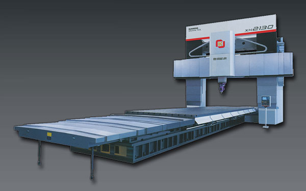 機(jī)床采用動梁龍門式框架,剛性好,精度保持性好。 機(jī)床配置多種附件銑頭實(shí)現(xiàn)對工件的五面綜合加工。 機(jī)床的X、Y、W向均采用靜壓導(dǎo)軌,使整個(gè)機(jī)床具有抗偏載能力強(qiáng)、運(yùn)動剛性度高、動態(tài)響應(yīng)性能好、定位精度高等特點(diǎn)。 橫梁正面上、下導(dǎo)軌為階梯式矩形閉式靜壓導(dǎo)軌,提高了其抗顛覆能力。 主軸采用二/三檔變速機(jī)構(gòu),不僅減小了功率缺口,而且提高了機(jī)床的切削性能。 大截面滑枕采用球墨鑄鐵、剛性好,強(qiáng)度高。 滑枕采用大功率的主軸伺服電機(jī),滿足重負(fù)荷強(qiáng)力切削。 Y軸進(jìn)給采用電機(jī)+絲杠/雙電機(jī)+齒輪齒條消隙結(jié)構(gòu),保證了較高的傳動和位置精度。 刀庫換刀機(jī)構(gòu)性能可靠。橫梁在一定位的范圍內(nèi)任意位置換刀,方便機(jī)床加工及保持加工精度,且提高了機(jī)床操作安全性。